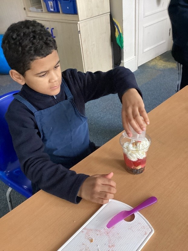 During cooking we will be developing our spreading and cutting skills. We will be making various sandwiches, encouraging the correct grip and action for the knife when spreading. We will also be making tropical fruit salads and kebabs developing our knife skills further by using the correct grip to cut fruit appropriately.